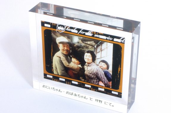 写真やイラストを印刷し、アクリルブロックに閉じ込めました。