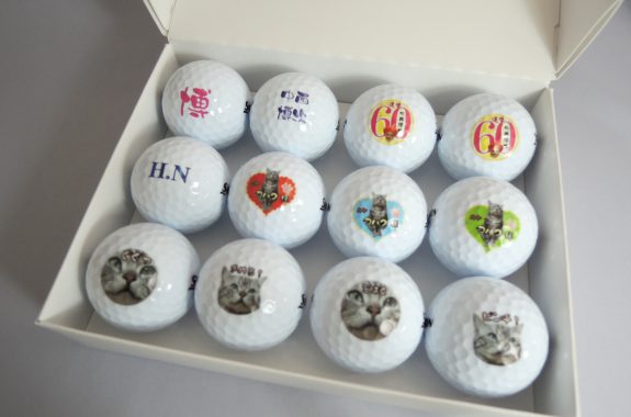 お名前やメッセージをボールにこめて、特別なアイテムに! ゴルフサークルでお揃いのマークや写真を入れるのも人気です。
